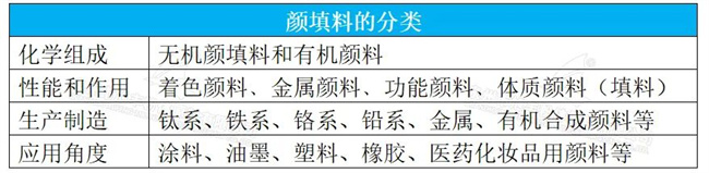 本文為了統(tǒng)一說(shuō)法,我們將這兩者統(tǒng)稱為顏填料,可以按以下方式對(duì)顏填料進(jìn)行劃分。
