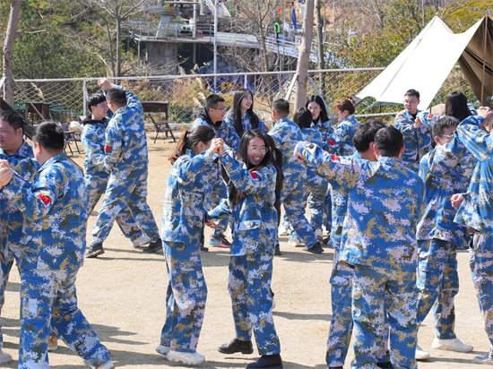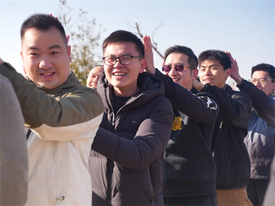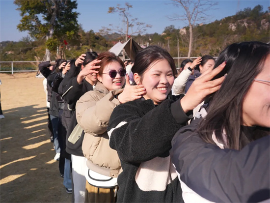 在進行運轉(zhuǎn)乾坤拓展項目前,大家在動感的音樂中盡情熱舞,歡聲笑語回蕩在場地,每個人臉上都綻放著燦爛的笑容。