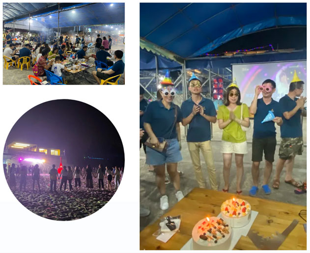 玩鬧過后我們升起篝火,盤起燒烤。在品嘗美味的同時,體驗露天KTV,一展美妙的歌喉。伴著優美的歌曲、升騰的火焰、璀璨的煙花、歡快的步伐,讓夏日的酷熱和煩躁在這里得到盡情釋放。別樣的篝火晚會,別樣的海邊浪漫生日派對,相信第三季度的壽星們此刻幸福滿滿~