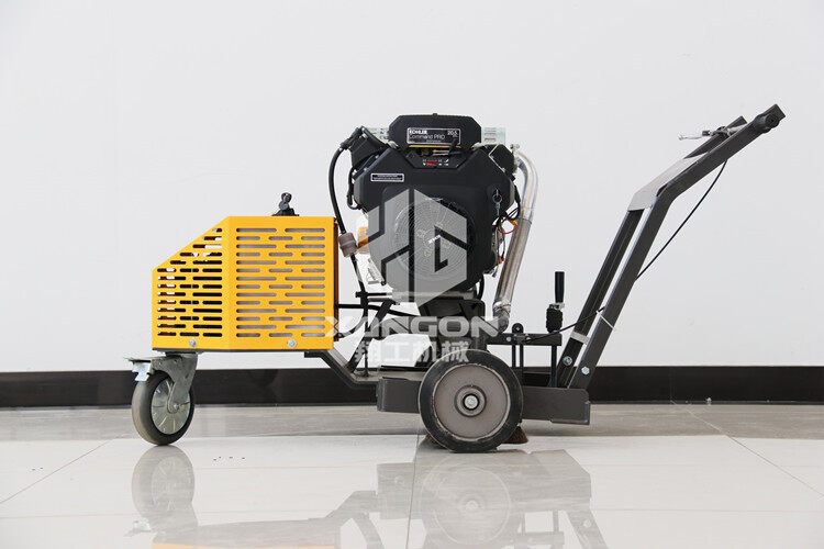 路面開槽機(jī)是由動力強(qiáng)勁的發(fā)動機(jī)作為動力源,通過三角帶帶動主軸高速旋轉(zhuǎn),手搖升降手輪使主軸下降,切割裂縫,前行走輪采用萬向輪,使整機(jī)在工作中可以按照裂縫自然形成的曲線進(jìn)行切槽,裝有匹配的風(fēng)扇頁還可以用做開槽后對槽里灰塵的清理,實(shí)現(xiàn)一機(jī)多用的目的。