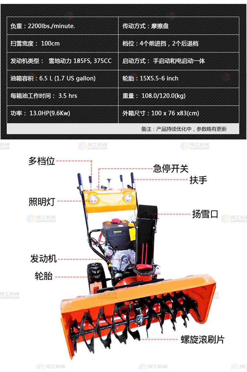 XG-100小型手扶自走清雪機掃雪機(黃色)
