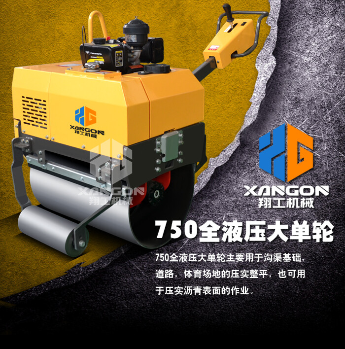 750全液壓大單輪主要用于溝渠基礎,道路,體育場地的壓實整平,也可用于壓實瀝青表面的作業。