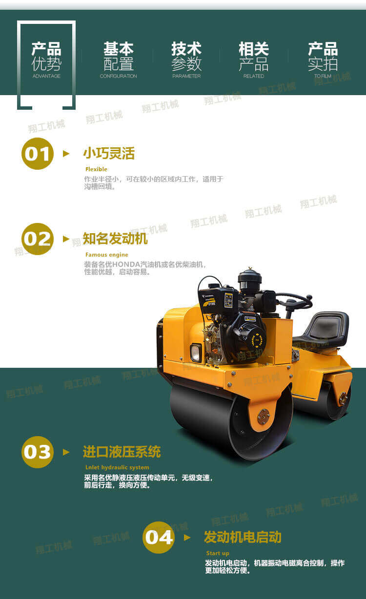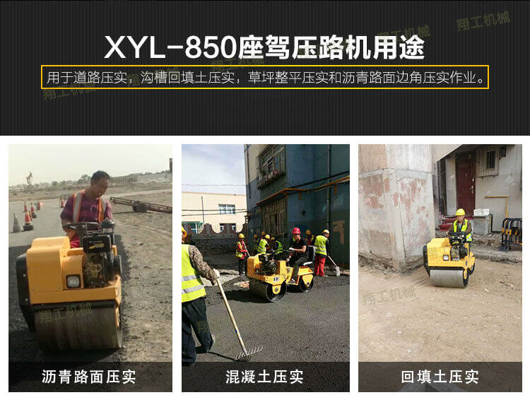 850小型座駕壓路機其結構緊湊,操作靈活,振動力強大廣泛應用于狹長道路壓實,溝槽回填土壓實,草坪整平壓實和瀝青路面邊角壓實作業。