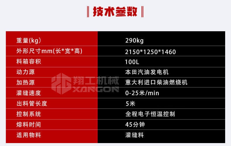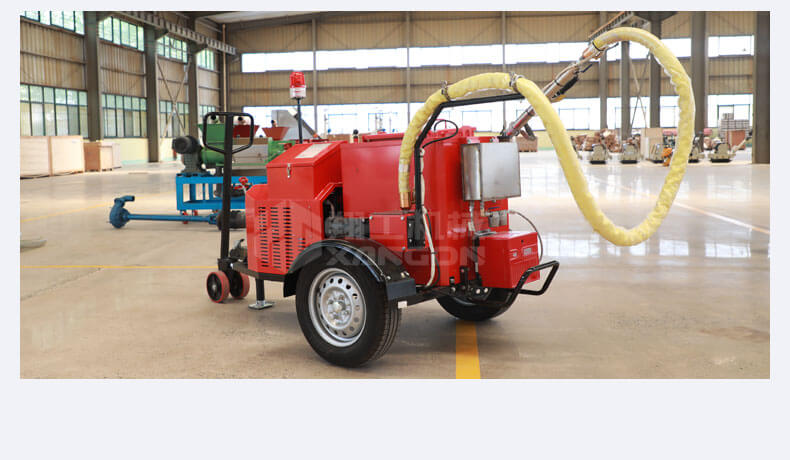灌縫機(jī)主要有手推式和自行式手持灌縫管操作,采用進(jìn)口柴油燃燒器加熱。在工作時(shí)首先在料箱內(nèi)加入瀝青或灌縫膠,啟動(dòng)發(fā)電機(jī)供電,依次間斷打開(kāi)導(dǎo)熱油泵開(kāi)關(guān),燃燒器開(kāi)關(guān),出料管加熱開(kāi)關(guān);