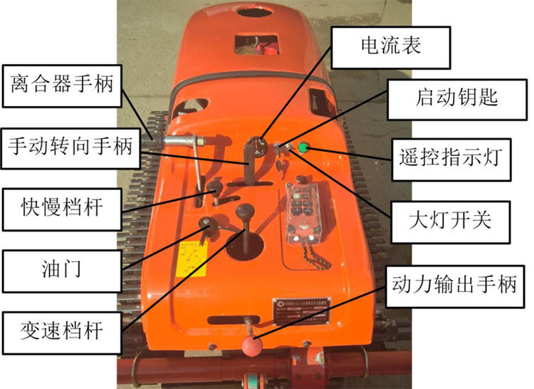 注意:左、右轉向油缸頂桿單獨推出,控制左、右轉向;同時推出為臨時停車;直線行走時油缸收回;調整發電機拉桿漲緊皮帶。