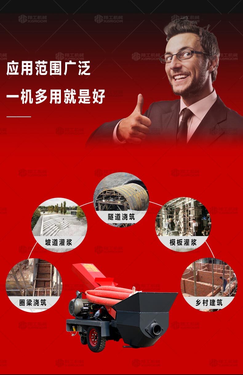 此設備是針對二次構造專門研發的細石混凝土輸送設備,體積小,重量輕,移動方便,是狹窄施工環境的選擇;能夠保證我們合理施工,大大減輕了我們的工作量。