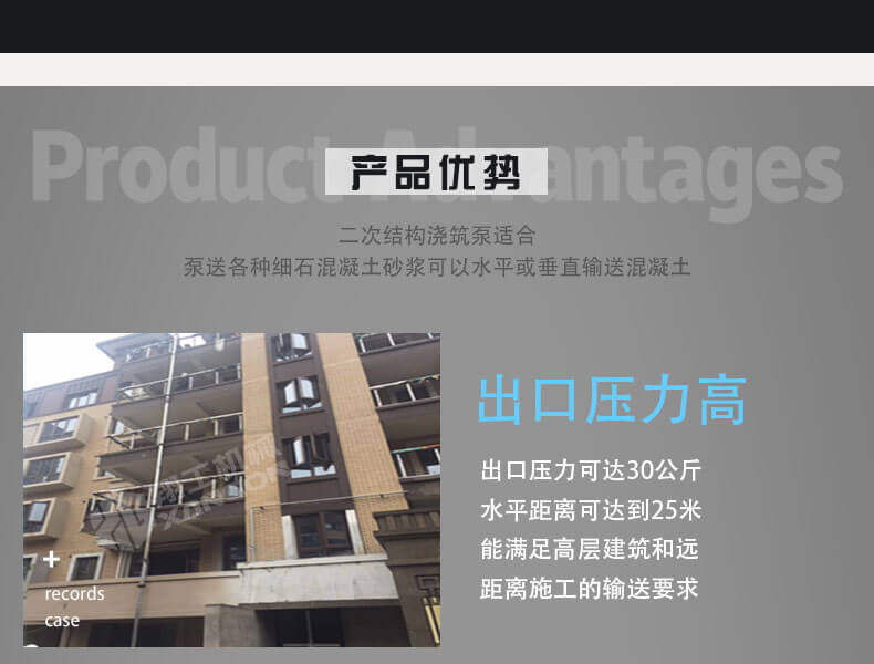 此設備是針對二次構造專門研發的細石混凝土輸送設備,體積小,重量輕,移動方便,是狹窄施工環境的選擇;能夠保證我們合理施工,大大減輕了我們的工作量。