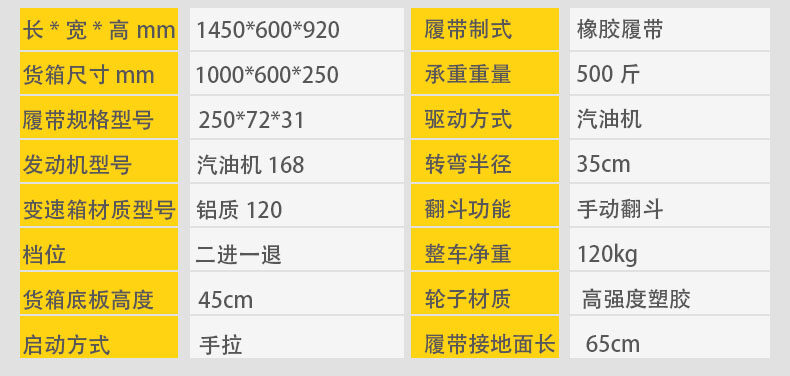 手扶式履帶運輸車它是采用手扶式的方式駕駛,自動靈活,安全可靠,可以在泥濘、結冰道路、沙漠、沼澤以及土質松軟或氣候條件不太好的接近角和離地角行駛。它的性能穩定,功能強勁,使用能力進一步提高。運載能力強,爬坡能力大,操作簡單,維修保養容易。