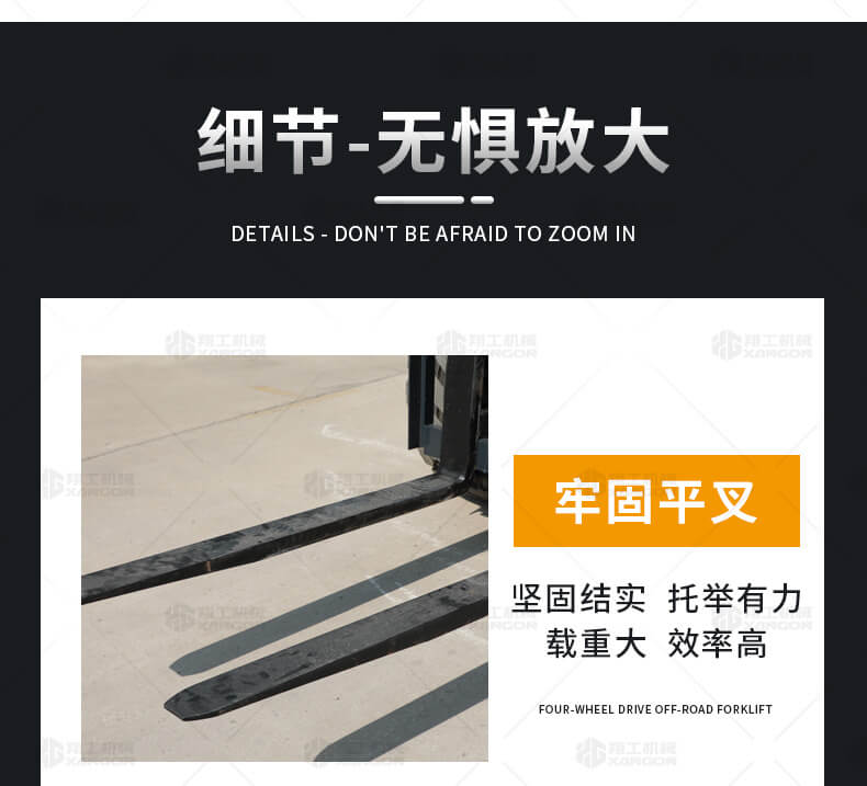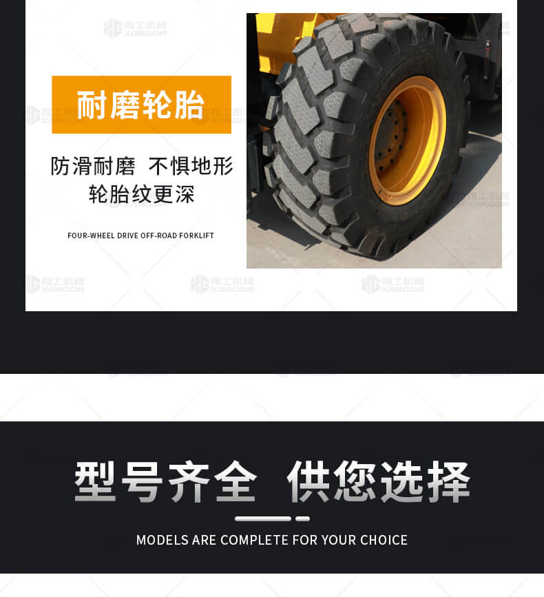 3.普通叉車只能在平整的路面上作業,而越野叉車既可以在普通路面上作業,還可以在山路泥路崎嶇道路作業,輪胎抓地力強,不打滑。