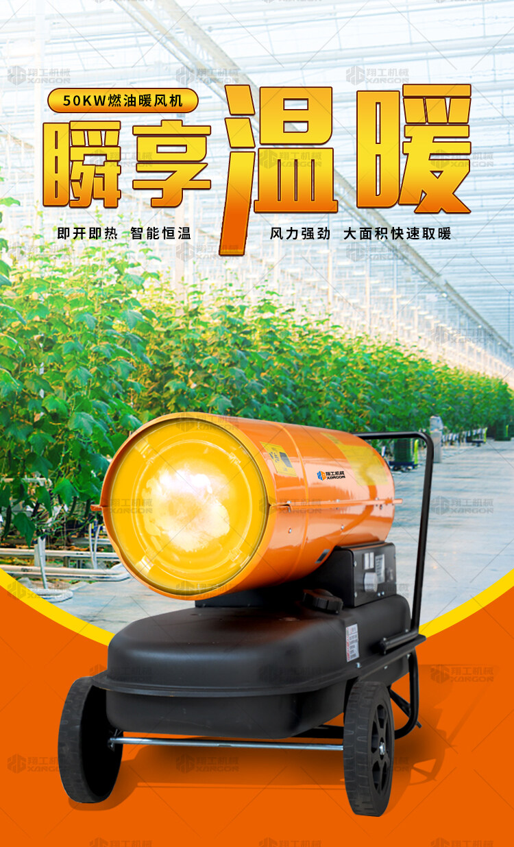 燃油暖風機可對禽畜取暖,育雛取暖,花卉養殖,大棚蔬菜瓜 果,商場,車間,展會進行取暖。