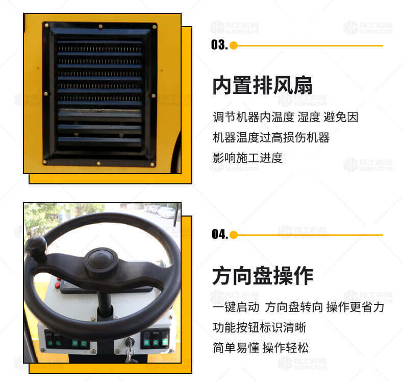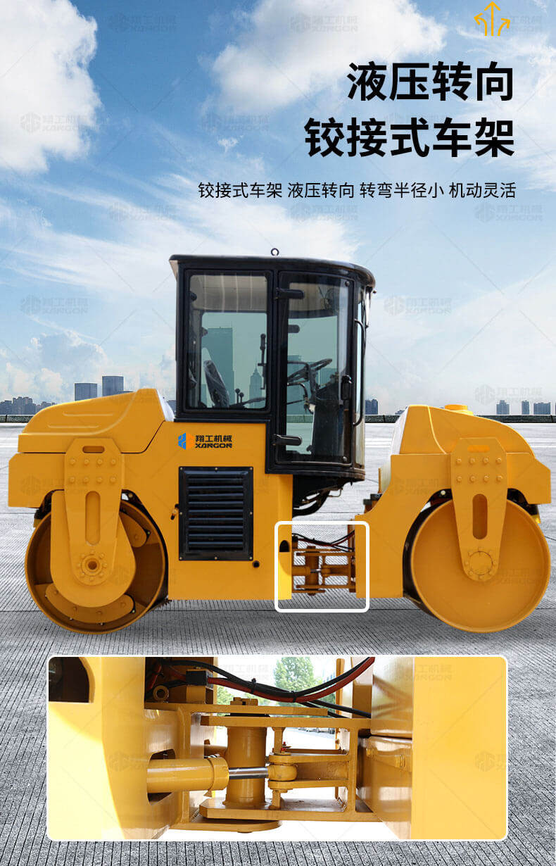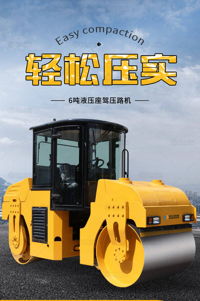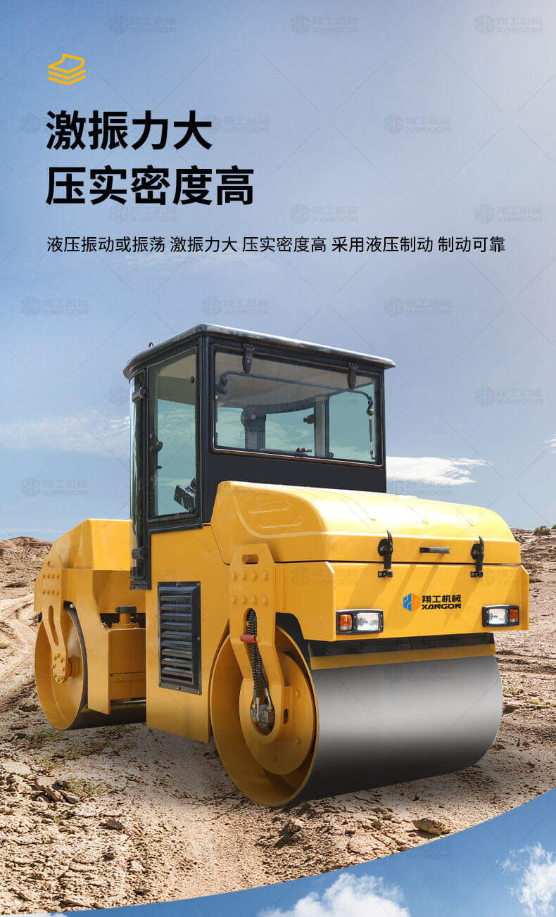 XGC6型振動壓路機(SAC6CD型振蕩壓路機)是一種串聯式的雙鋼輪型振動(蕩)壓實機械;該機主要由鉸接式車架、振動(蕩)輪、轉向輪,動力裝置、液壓振動、液壓轉向、操縱機構、電動灑水和電氣系統等主要部分組成。