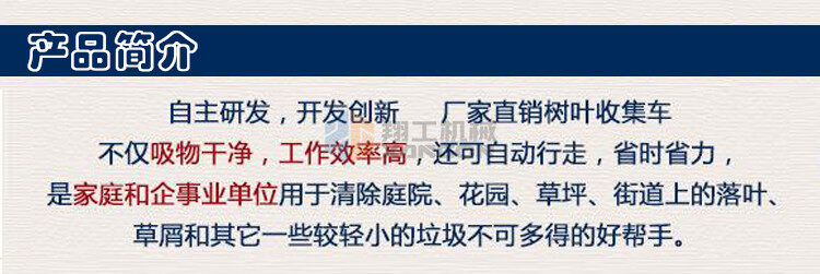 該設備工作效率高,比人工清掃效率高幾倍,可手推助力行走。垃圾儲存袋采用便捷式方式,便于更換垃圾,且使用成本較低。吸口可配置延長管,用來吸收綠化帶中的落葉和垃圾。吸口高度可調,面對落葉較厚或大的法桐樹葉較多的區域,也能輕松收集干凈。目前以用在環衛人行道、園林、物業小區、校園、公園、廣場、工廠廠區和車間等得到廣泛應用。