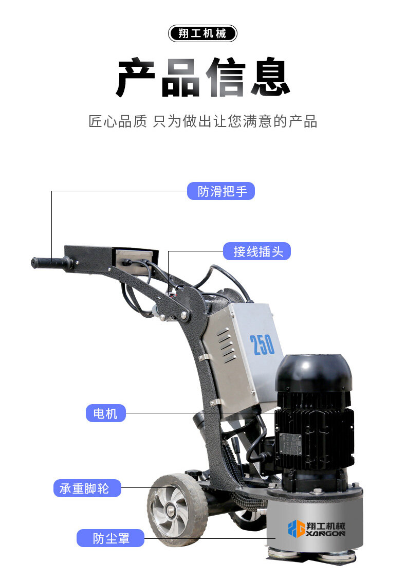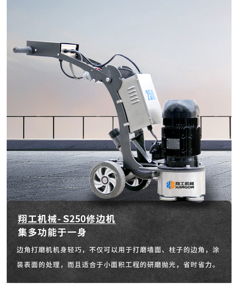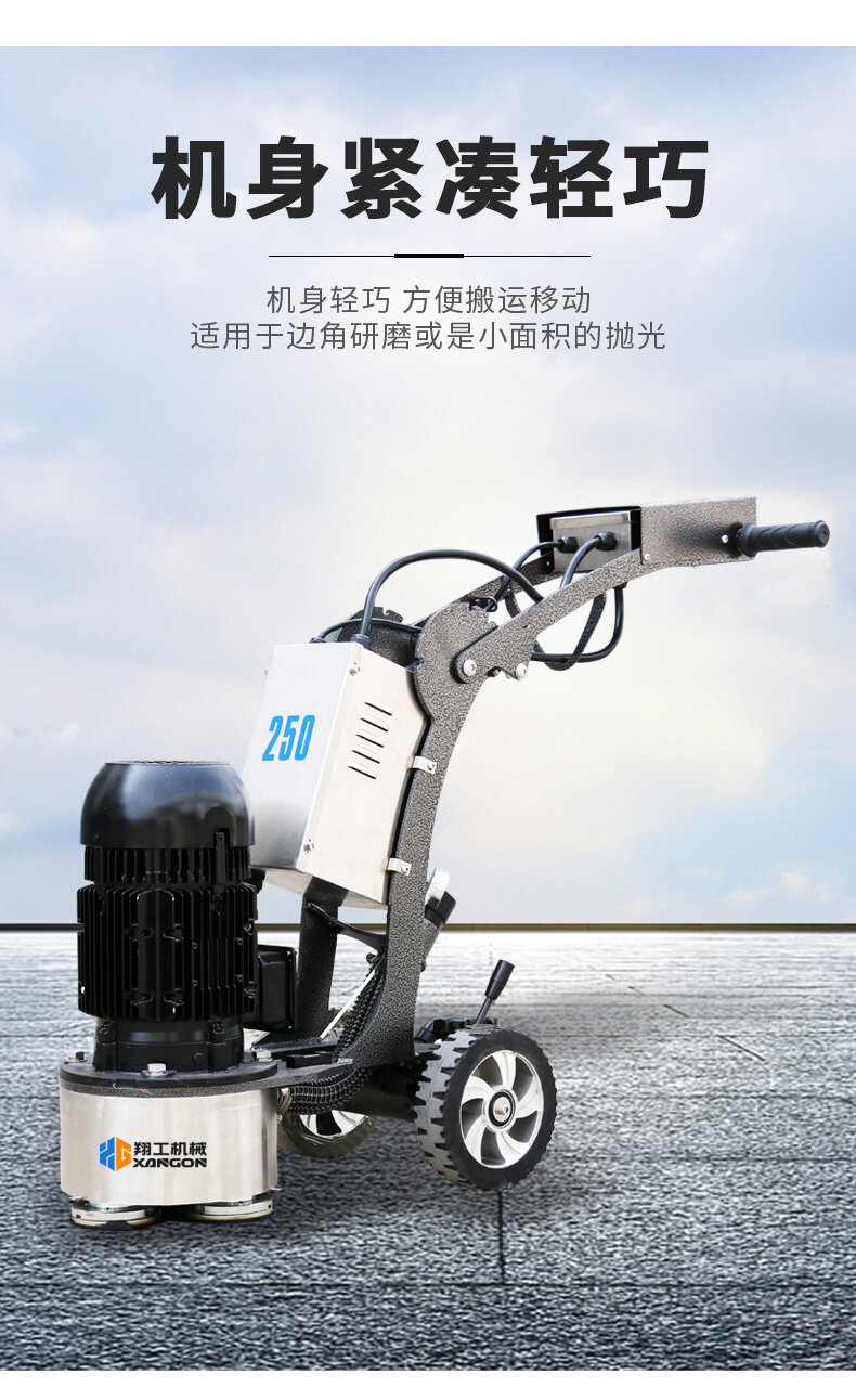 250拋光修邊機也叫混凝土地坪邊角機,適合邊角、小面積打磨,機動靈活,使用方便,下面帶大家來了解一下這款產(chǎn)品詳情。