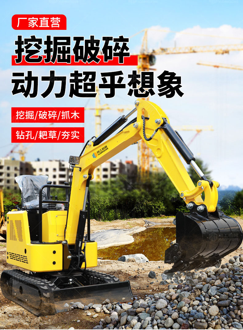 小型挖掘機主要適用于農業蔬菜大棚的土地疏松,市政部門的園林綠化、果園苗圃栽樹挖坑、混凝土路面破碎,砂石料攪拌等空間狹小的施工作業等;小型挖掘機價格低、質量輕、保養維修方便,具有獨特優勢。