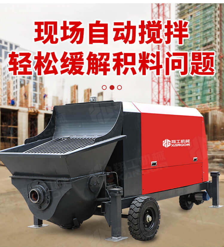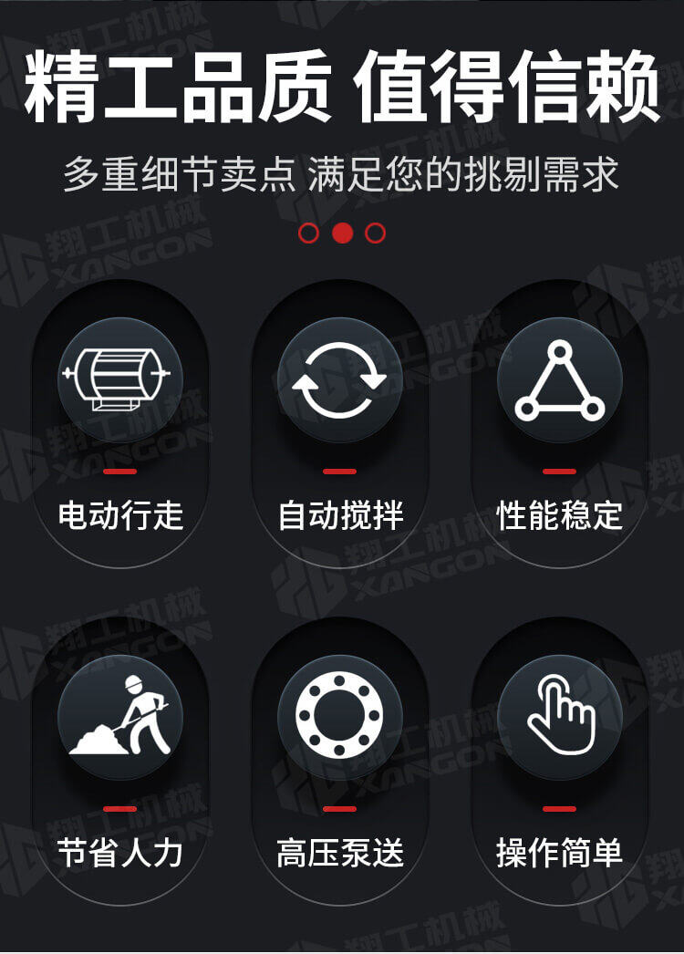 采用獨創的泵車尾輪驅動系統輕松解決移動時帶來的各種困難;采用雙排風冷散熱系統散熱效果更好,液壓系統采用壓力更高,性能更穩定的柱塞式自動變量主油泵,采用先進的三維立體壓模一體式自動攪拌料斗可輸送機制砂,高標號混凝土,有效緩解積料問題。