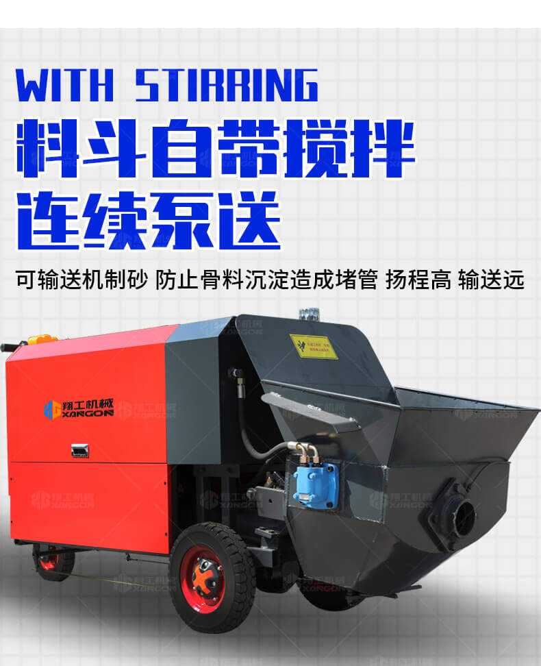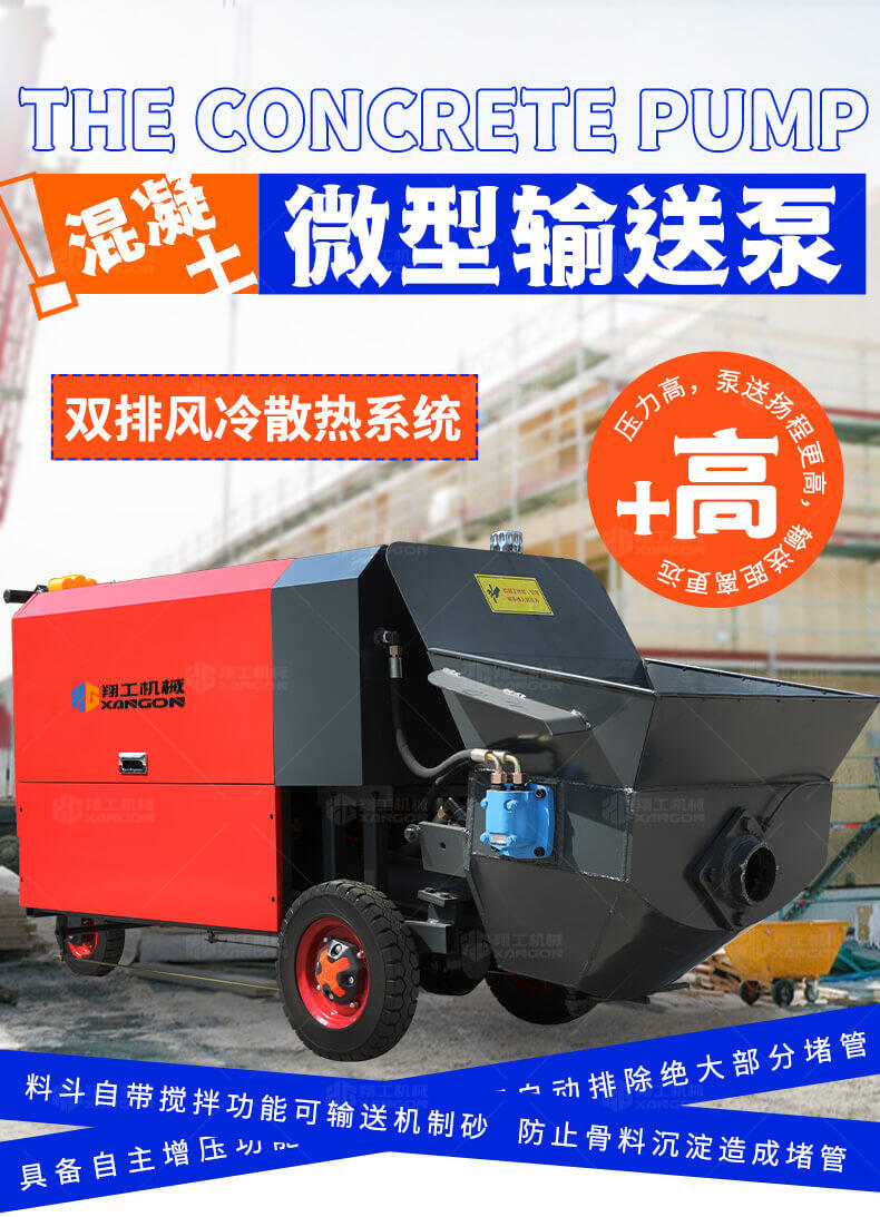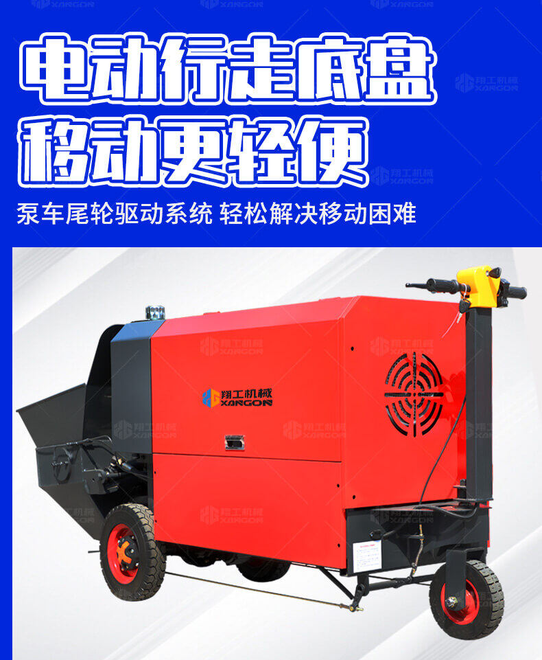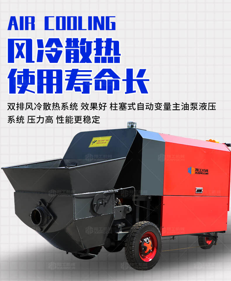 采用獨創的泵車尾輪驅動系統輕松解決移動時帶來的各種困難,采用雙排風冷散熱系統散熱效果更好,液壓系統采用壓力更高,性能更穩定的柱塞式自動變量主油泵,采用先進的三維立體壓模一體式自動攪拌料斗可輸送機制砂,高標號混凝土,有效緩解積料問題。