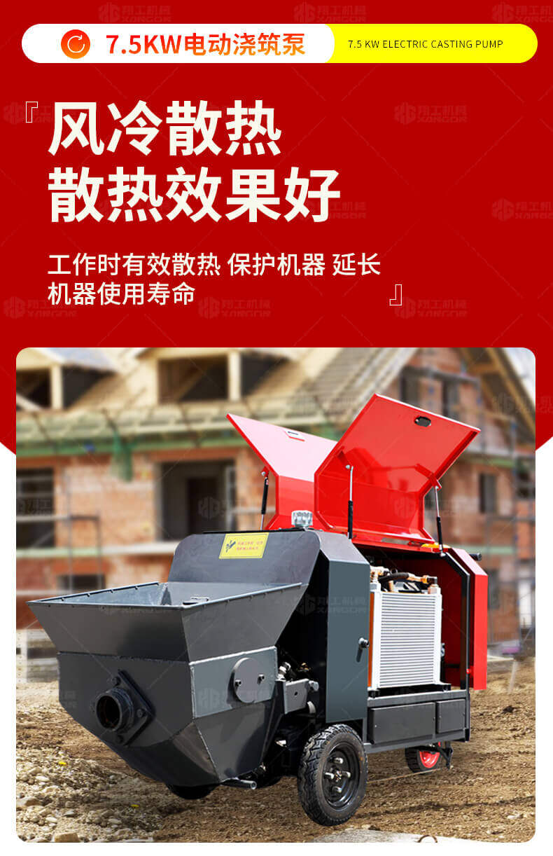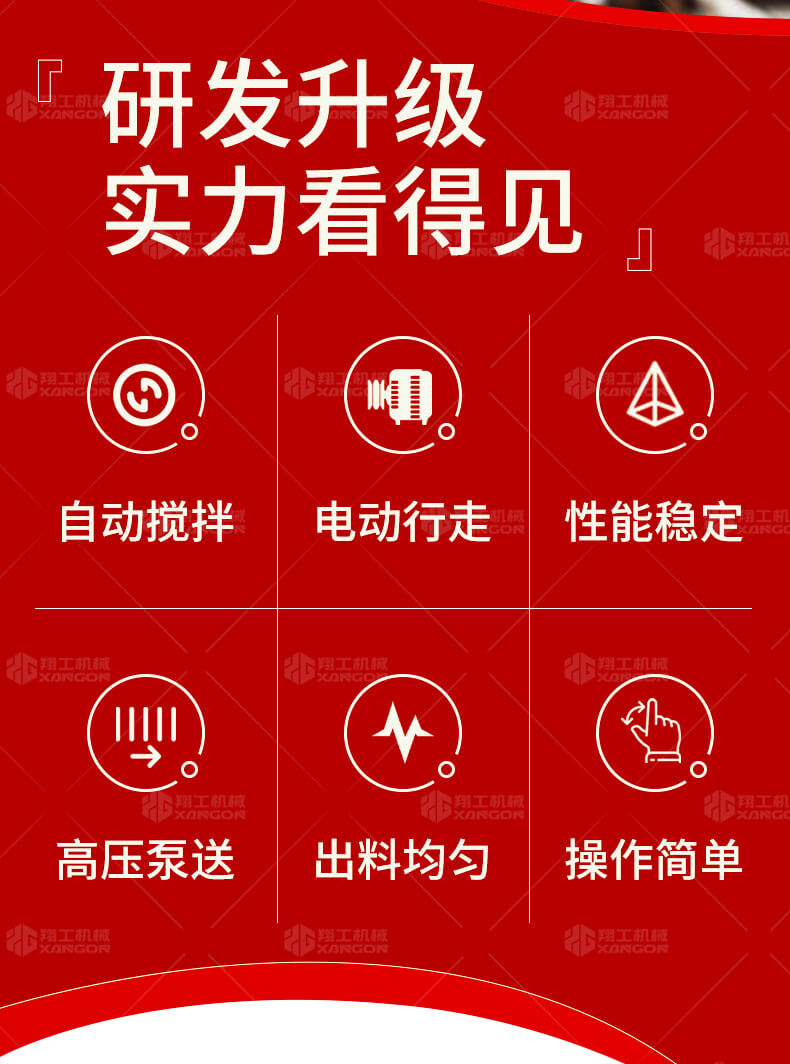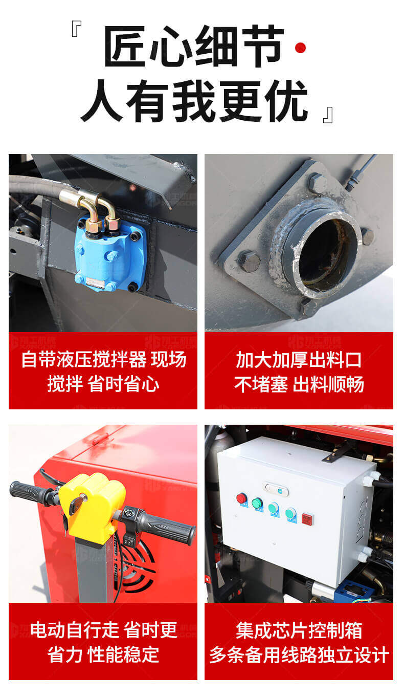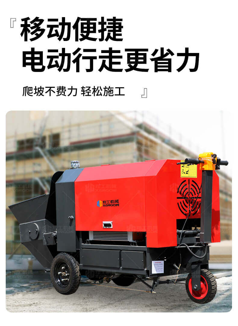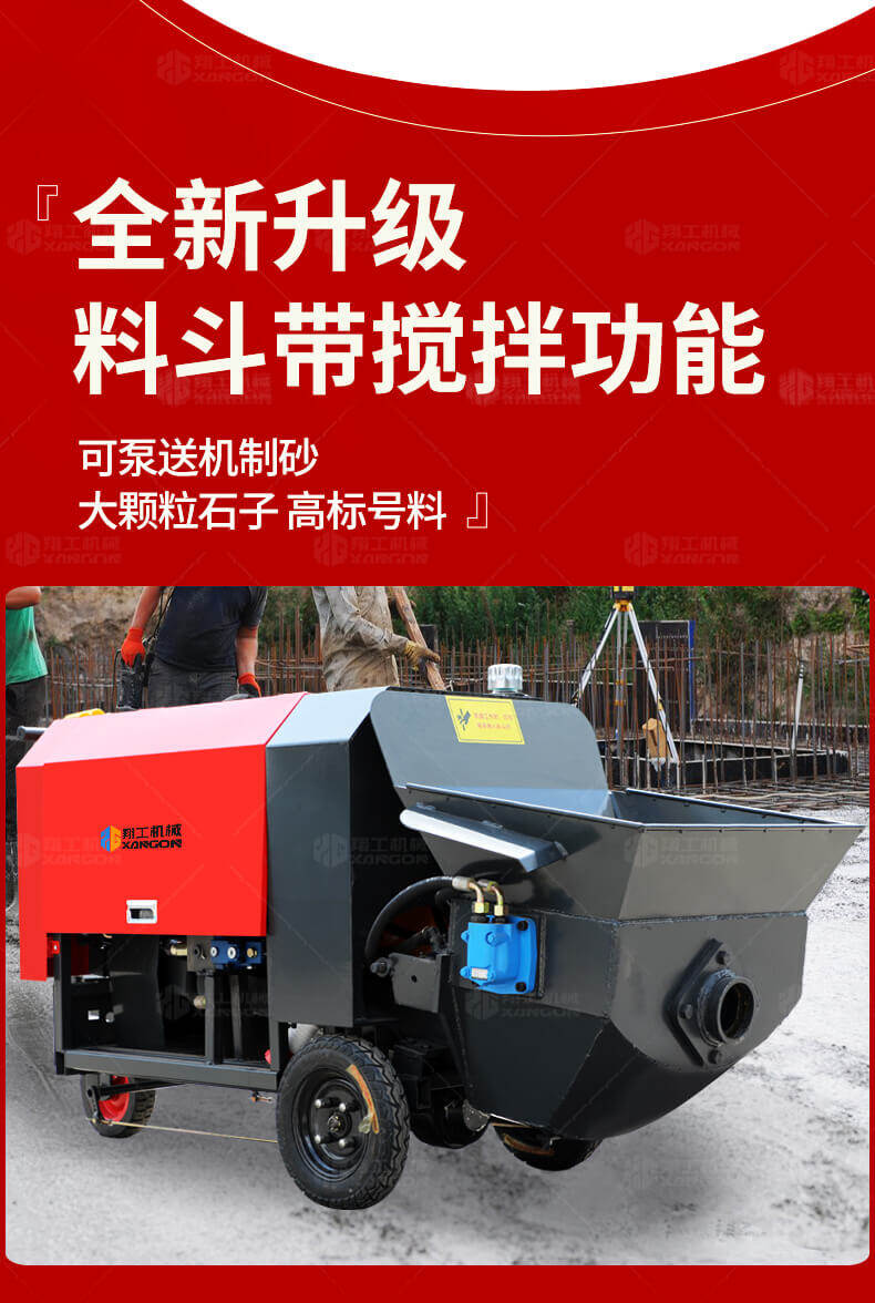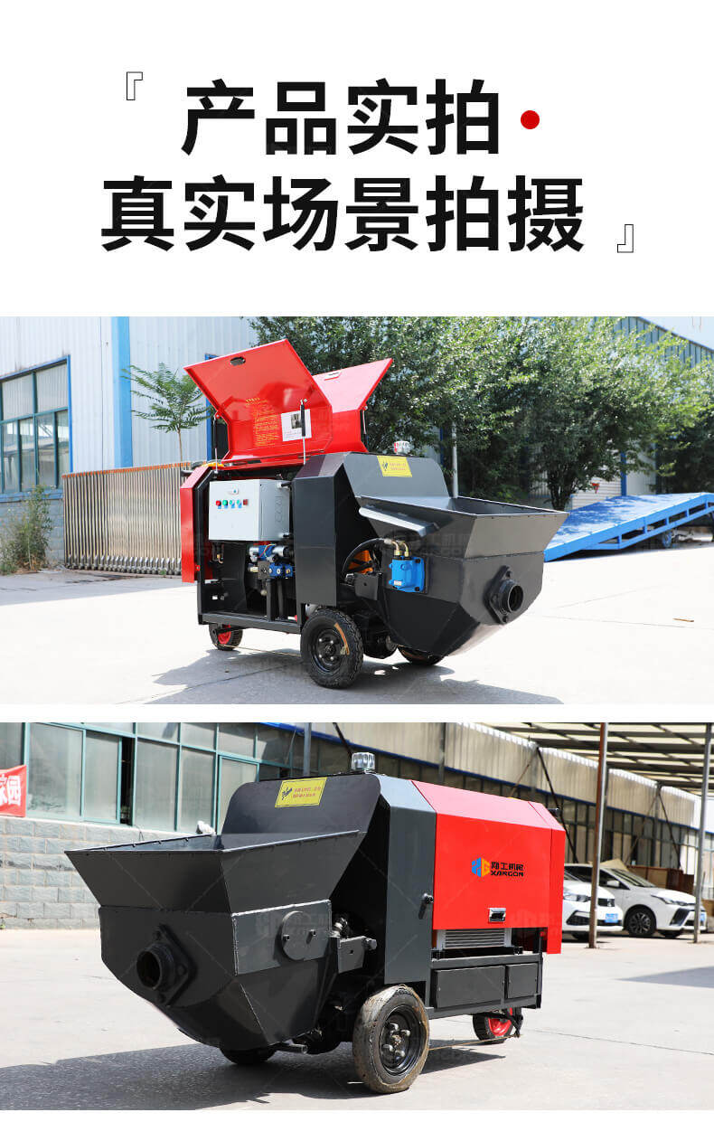 本產品為電動行走臥式造型混凝土輸送泵,料斗帶攪拌功能,可泵送機制砂;風冷散熱,散熱效果好;集成芯片控制箱,多條備用線路獨立設計,不用擔心控制系統問題;操作部件采用24v 安全感應電壓,安全可靠;S 彎采用兩個單向油缸,速度均勻。