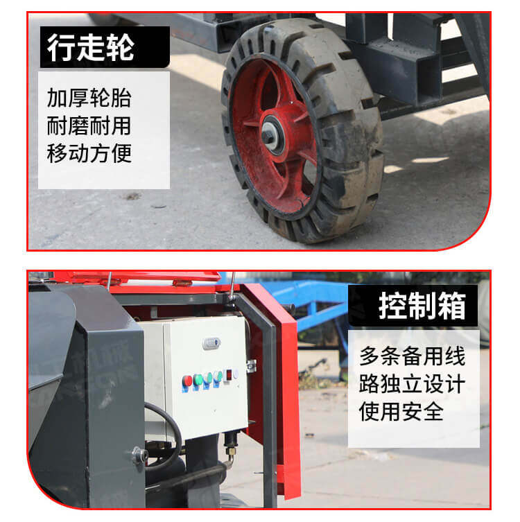 本產品為手推式行走臥式造型輸送泵,料斗帶攪拌功能,可泵送機制砂;風冷散熱,散熱效果好;集成芯片控制箱,多條備用線路獨立設計,不用擔心控制系統問題;操作部件采用24v 安全感應電壓,安全可靠;S 彎采用兩個單向油缸,速度均勻。