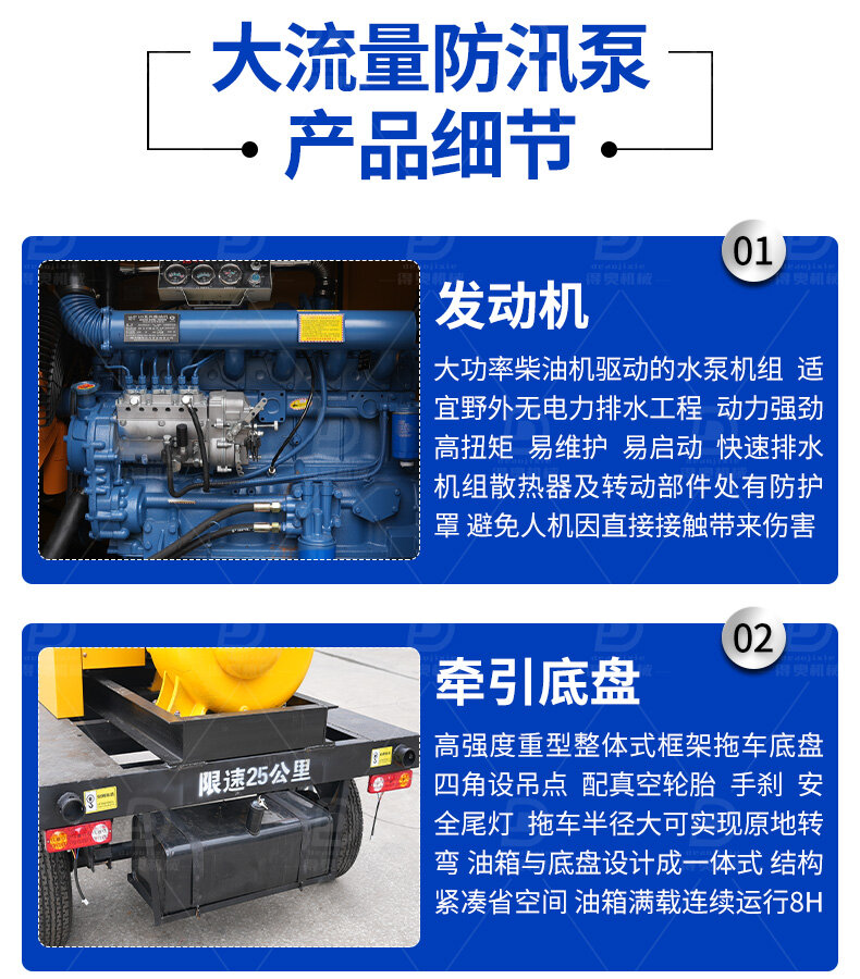 移動防汛排水泵 大口徑大流量 防洪排澇 應急排水 型號齊全