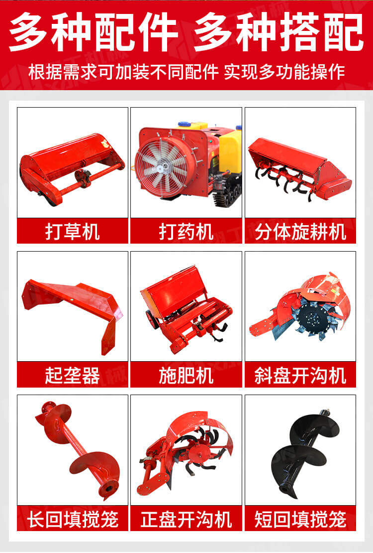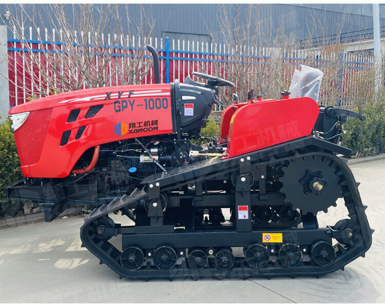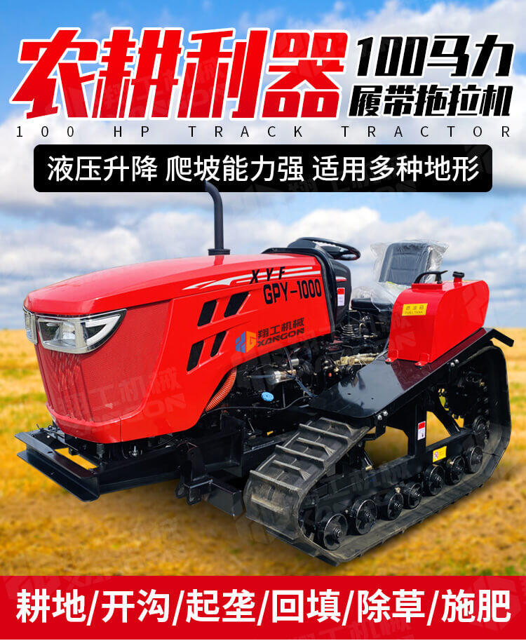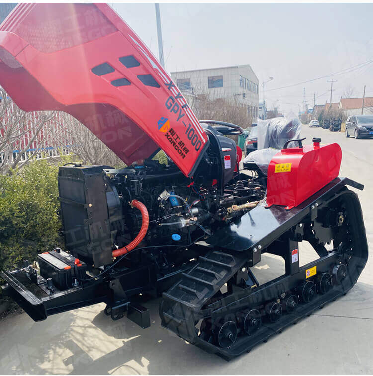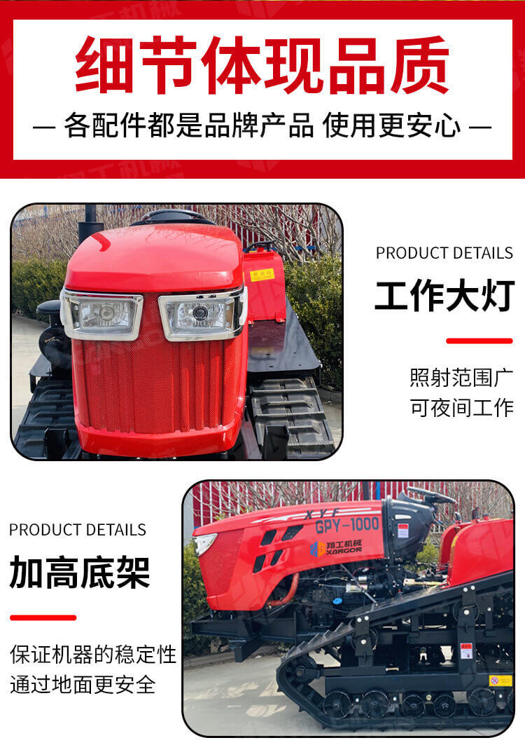 100馬力果園旋耕機液壓升降,爬坡能量強,專為復雜地形設計。橡膠履帶接地壓力小,附著力強,有效防止打滑,特別適用于水田、坡地及泥濘地塊。旋耕除草效果好,效率卓越,是規模化農耕與高標準農田建設的強勁動力。