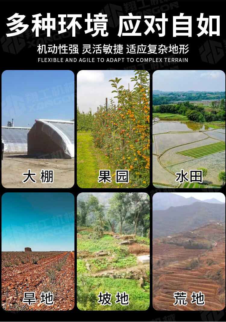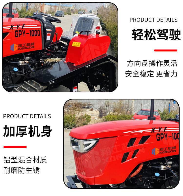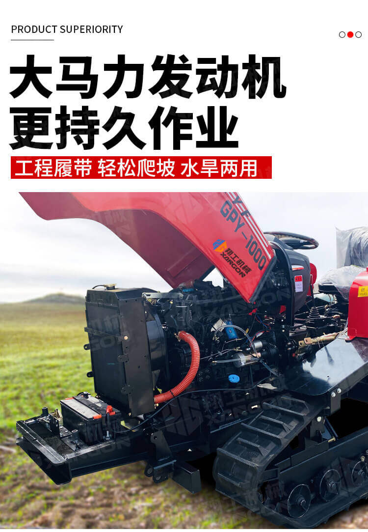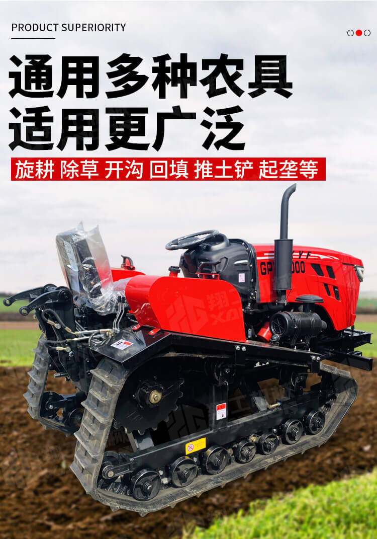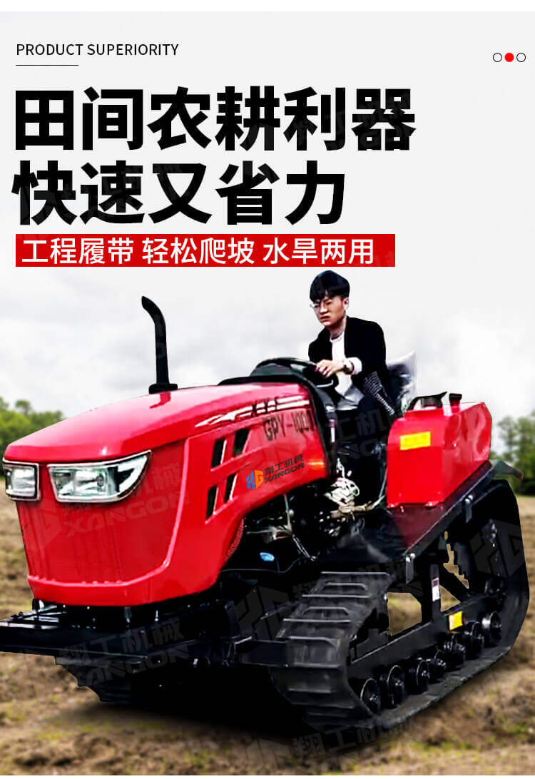 100馬力果園旋耕機液壓升降,爬坡能量強,專為復雜地形設計。橡膠履帶接地壓力小,附著力強,有效防止打滑,特別適用于水田、坡地及泥濘地塊。旋耕除草效果好,效率卓越,是規模化農耕與高標準農田建設的強勁動力。