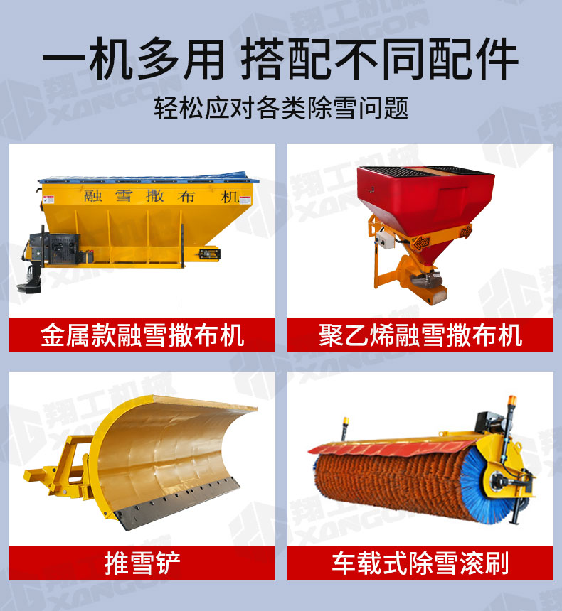 用途以皮卡車為底盤車配備前置除雪鏟、后置液體撒布機,專用于機場跑道等區域除雪融雪作業,也可換裝掃雪滾刷進行掃雪作業。